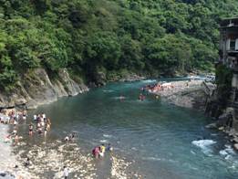 由於天氣太熱了,大家選擇到溪邊玩水而不是去泡溫泉