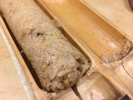 分別是筒仔米糕、炒檳榔花、炸溪蝦溪魚、山豬肉